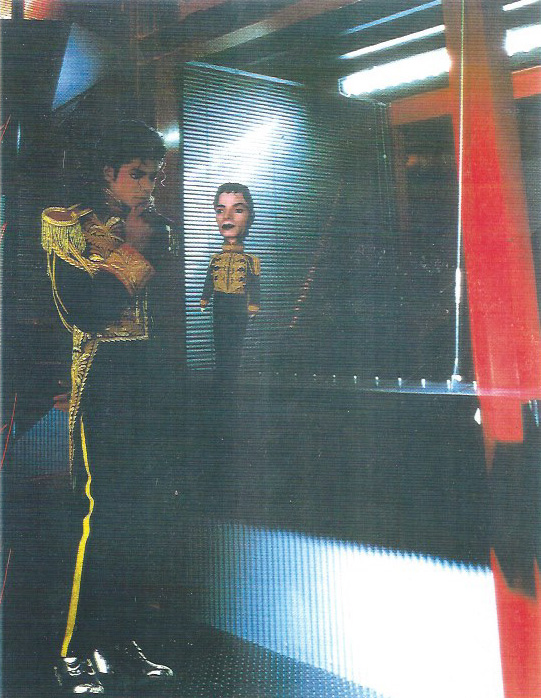 Bay dolls. Action Heroes, or Barbie all occupy up to 3 aisles in most large toy stores and appear to be relatively the same. Celebrity dolls are only created as vague resemblance’s. through the years I have developed a process that makes it possible to create these dolls with extreme level of detail and finesse without increasing the production costs. It would make it possible to make a doll that has the appeal for not only collectors but also to children. it would make it possible to connect both the worlds of investment and play in by creating a much more realistic representation than any doll previously made of Michael. It would give wider market appeal rather than delegate sales to only high priced specialty stores. Even Doll collecting in itself is an industry that is the second largest in the United States preceded only by stamp collecting and followed by coin collecting according to 1994 “Big Black Book” statistics. Enclosed is a picture I saved out of the 89 issue of Vanity fair that featured Michael, his back to the camera only revealing his reflection in the mirror. Like his image this doll is an abstraction of Michael himself that actually heightens ones realization of Michael’s true self. This image was created by a friend to illustrate idea of how the Song I’m a Big Boy Now” my be represented by this doll. My intentions were not with this song originally. I have been lead by my neighbor Dave Shorey who has recently been asked to play guitar in a remake of the song written by Michael Jackson when he was young. What are the chances of two neighbors – door to door both working on a Michael Jackson project!